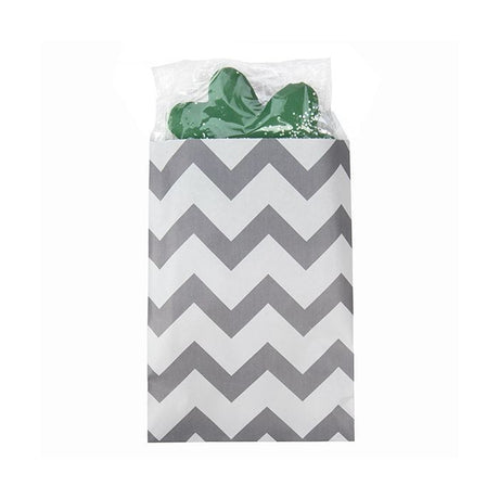 Normaler Preis €10,70Grundpreis /Nicht verfügbarNachbestelltKlappenbeutel Papier Weiß mit Grau Chevron Streifen 127x203 mm - 100 Stk