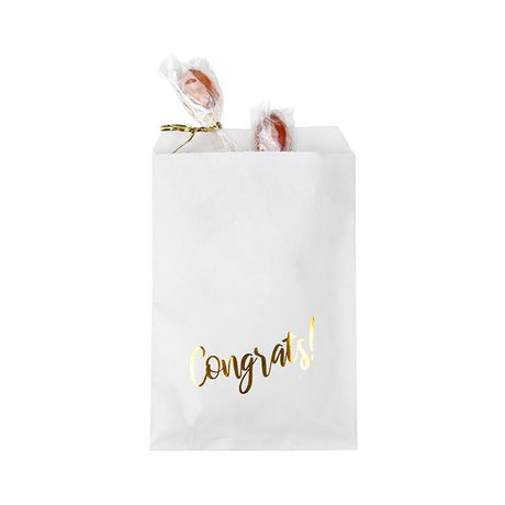 Normaler Preis €26,20Grundpreis /Nicht verfügbarNachbestelltKlappenbeutel Papier Weiß mit Gold "Congrats" 127x203 mm - 100 Stk