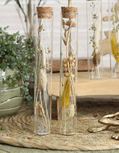 Verkaufspreis €23,95 Normaler Preis €39,45Grundpreis /Nicht verfügbarSehr geringer Bestand (2 Einheiten)Glasröhre mit Trockenblumen Natur Ø3x20cm - 12 Stk