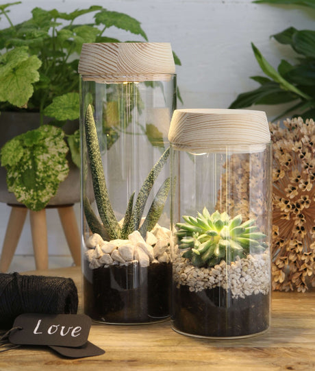 Glaszylinder mit LED im Holzdeckel | H: 23cm - 1 Stk