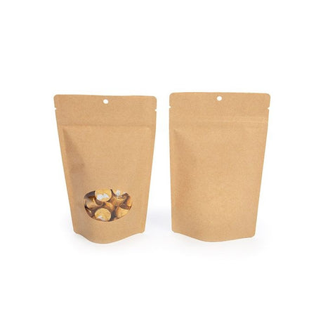 Normaler Preis €97,70Grundpreis /Nicht verfügbarSehr geringer Bestand (3 Einheiten)Standbodenbeutel Kraftpapier 149x89x232mm | 310 Gramm mit Sichtfenster & Aufhängeloch - 100 Stk