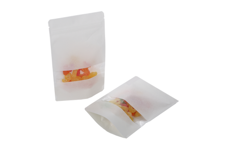 Normaler Preis €28,50Grundpreis /Nicht verfügbarÖko Standbodenbeutel Reispapier mit rechtekige Fenster 102x60x152mm - 100 Stk
