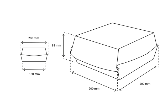Menübox / Hamburger Tablett 200x88x200mm FSC®Mix kraft - 300 Stück