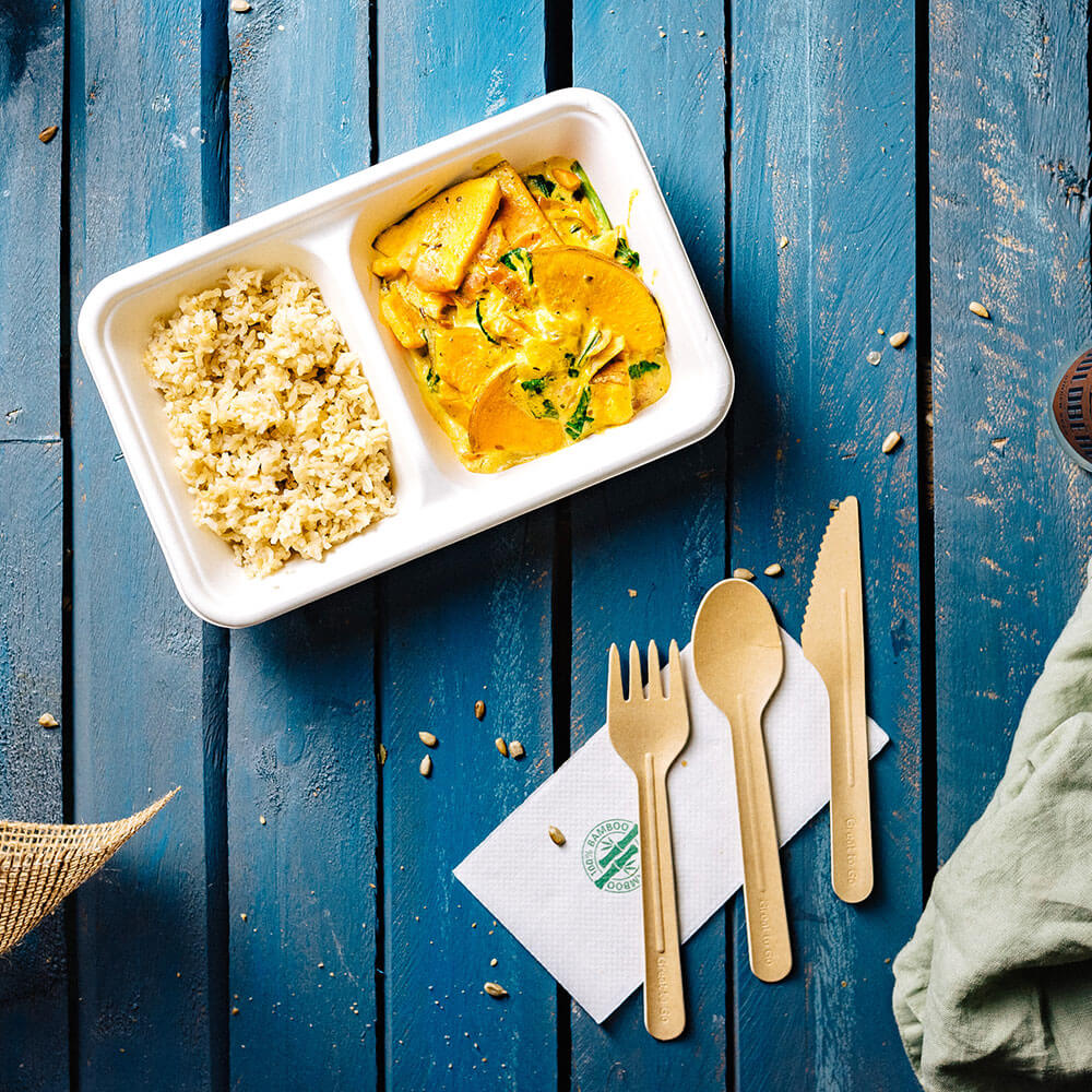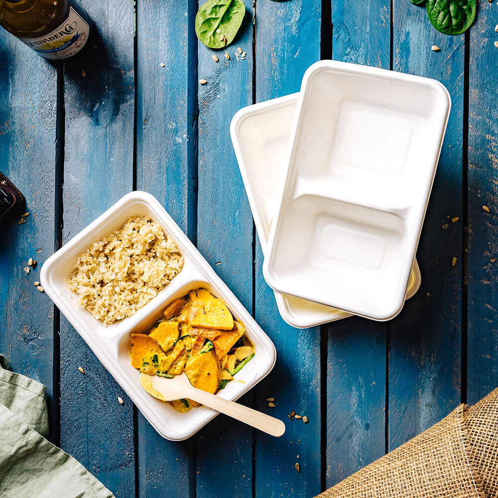 Da die Becher aus Zuckerrohr hergestellt sind, sind sie auch zu 100% biologisch abbaubar und somit sehr umweltfreundlich. Die Schalen sind robust und eine geeignete Alternative zu 'normalen' Plastikbehältern